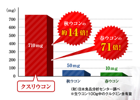 このクニッツウコンは、日本で一般的な秋ウコンの約14倍、春ウコンの約71倍の含有量を誇ります。